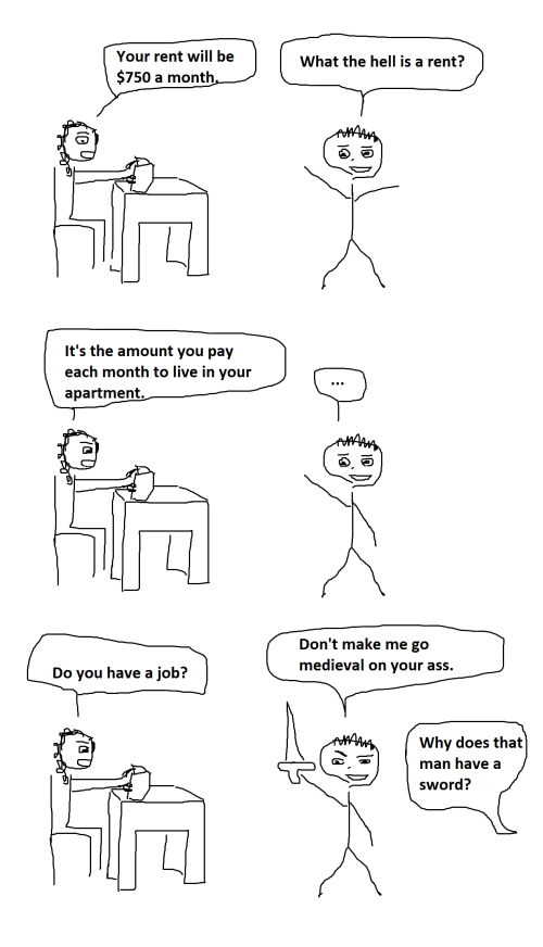 • Real World – Pay bills and rent myself on time by writing a check.  If I only do something once a month, how am I supposed to remember that?  Also, why do we still have checks?  Are you kidding me, banks?  I take a piece of paper with clouds, unicorns, dolphins or whatever printed on it, write any amount I choose, and that is legal tender!?