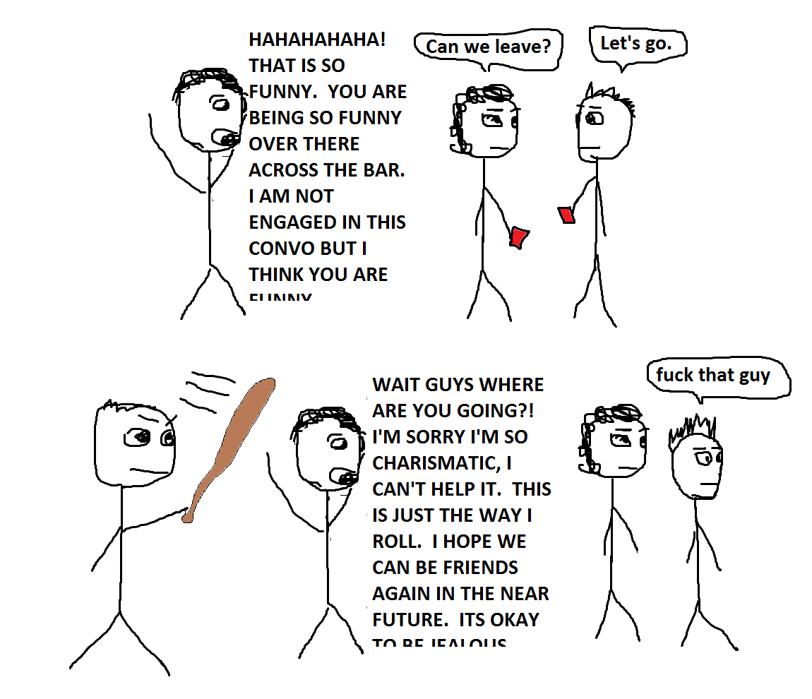 What’s that? You don’t think you can do it? But you haven’t even started! Let’s take a look at charisma step-by-step, and see what it takes to own a room, or at least your general vicinity. It’s not as hard as it sounds, trust me, you can do it. I know because I used to be shy, boring, frail, neurotic, awkward, and have low self-esteem. Now I’m only half of those things, plus some other ones that I’m not really sure what to do with! All it took was adding a little charisma. Bang! Pow!
