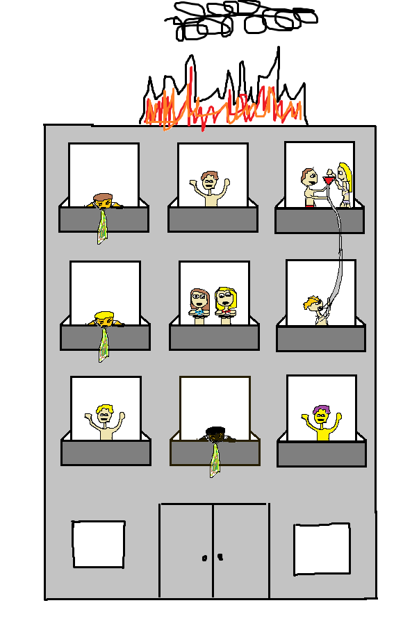 Did that guy in the bottom right corner of the hotel get jaundice? That’s some serious partying!
