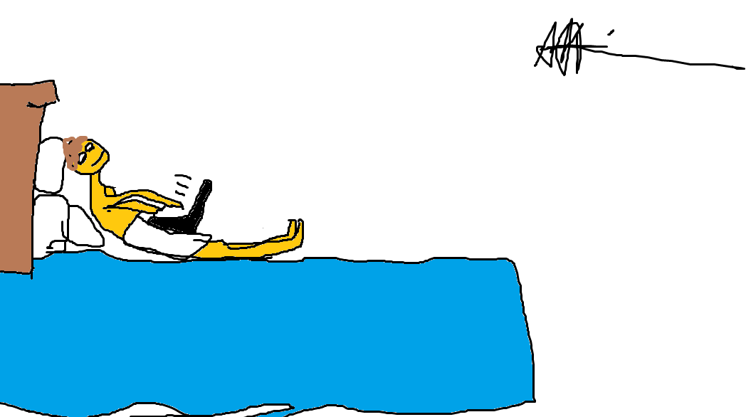I will now leave you with a drawing, albeit a crappy one, because I don’t know where my pad is and I am laying in my bed half-naked because I just got out of the shower and actually the laptop is kind of warm and I’ll just leave that there.
